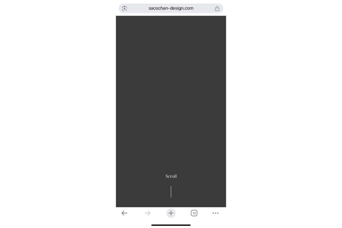 「Scroll」の文字をCSSで調整。スクロールを促す縦線の動きはCSSアニメーションで調整しています。