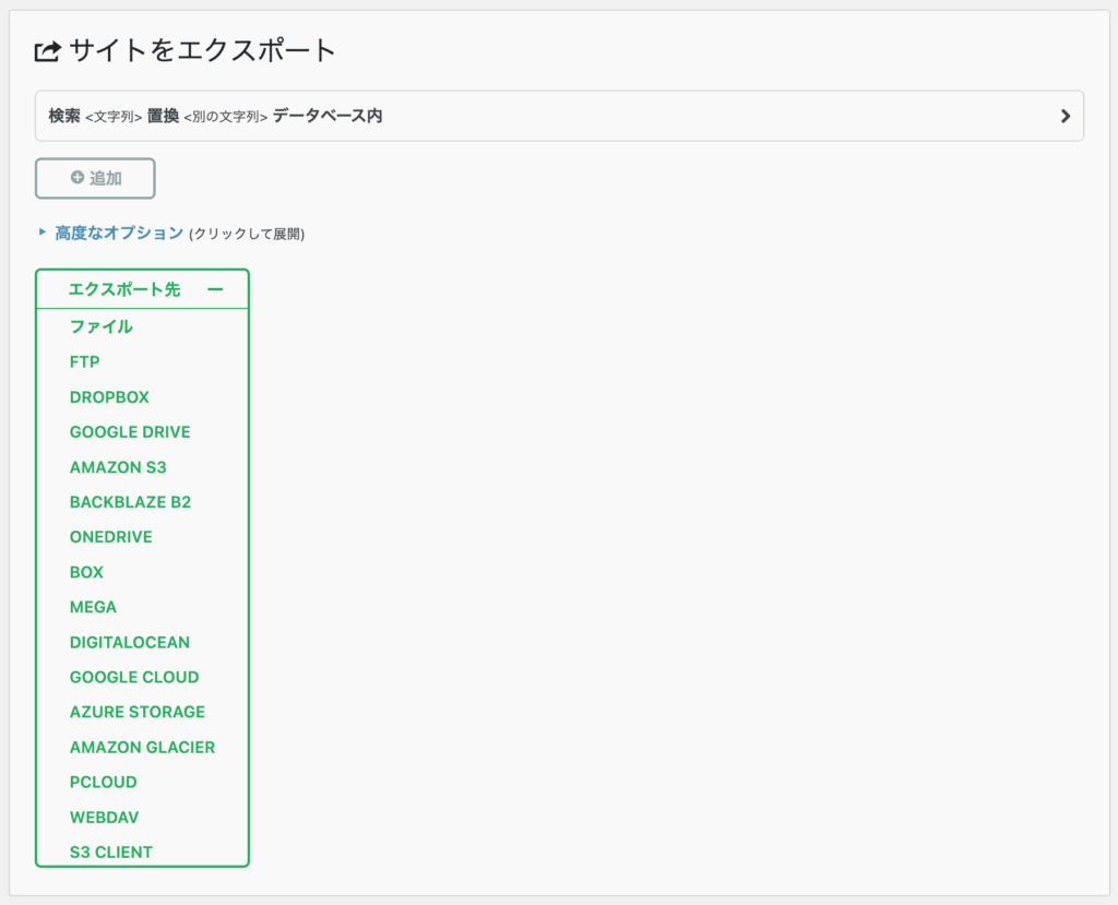 - WordPress 管理画面 > All in One WP Migration > 「エクスポート」を選択