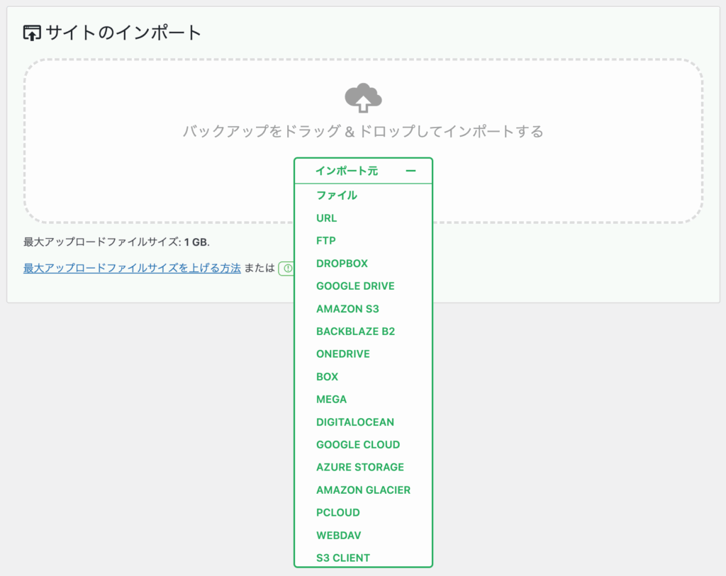 STEP3 All in On WP Migrationでテスト環境にファイルをインポートする